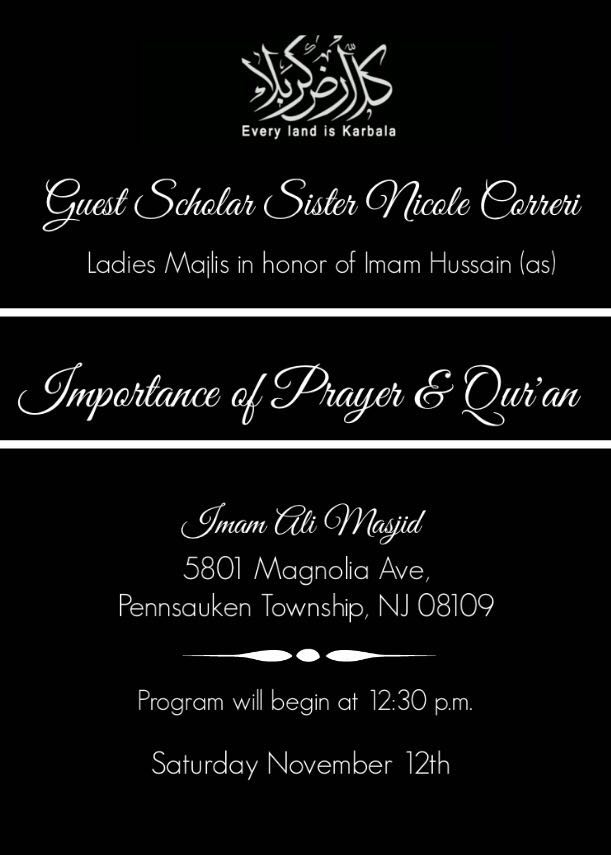 Please join us on Saturday, November 5th for an Arabic Majlis with Sheikh Amini to commemorate the Martyrdom of Imam Hassan. The program will begin @ 8pm. There are two narrations regarding the passing of the Imam in 50AH. The first is the 7th of Safar, and the second is the 28th of Safar. More information can be found here.