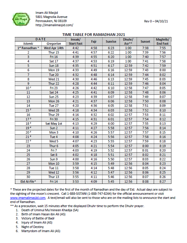 The Moon-Sighting Committee of the Council of Shia Muslim Scholars of North America announces that Tuesday, April 13th, 2021 will be the last day of the month of Shaban and that Wednesday, April 14th, 2021, will be the first day of the holy month of Ramadan, 1442 A.H. for the entire region of North America.