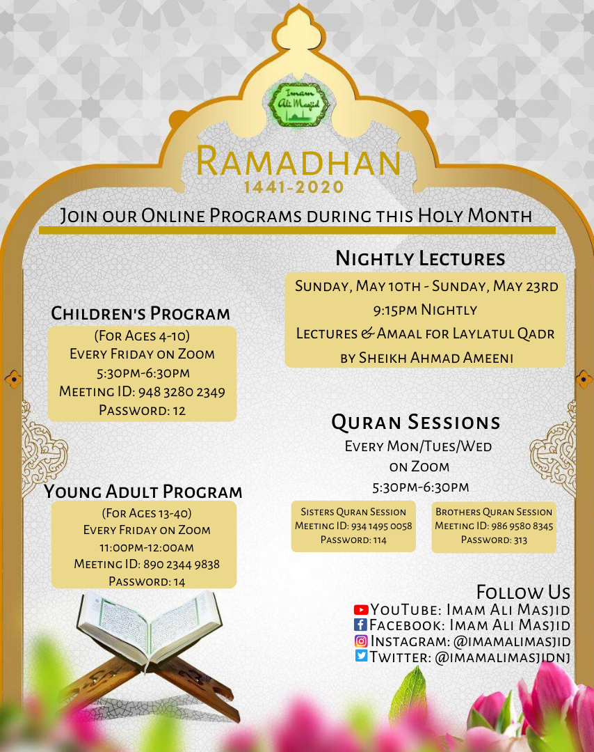 On behalf of the Imam Ali Masjid community, we would like to convey our deepest sympathies and condolences to the family of the Marhoom. InshaAllah, upon the clearance of the social distancing and stay at home orders, arrangements to pay respects to the bereaved family will be announced.