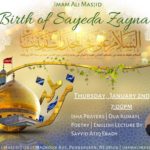 Join us on Thursday, January 9th at 7pm to commemorate the martyrdom of Sayeda Fatima al-Zahra (AS). The program will begin with Khatme Quran, followed by Dua Kumyal, and English lecture by Sayyid Atiq Ebady. Please view the flyer below for more information.